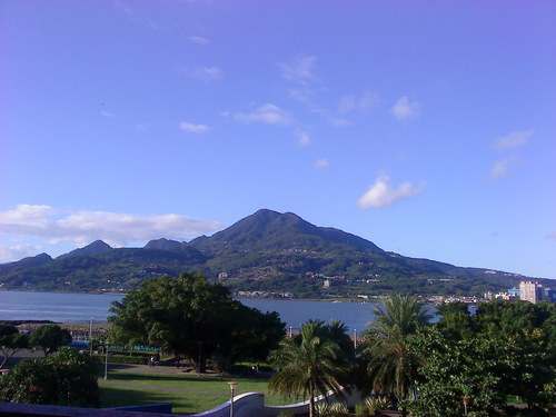 淡水自然風景美貌總少不了觀音山這塊主要拼圖,夕照的美需要觀音山山影適時襯拖自然彩暈的畫布,而觀音山在清領時本地的住民總是稱這座山為八里坌山,名稱由來為山下平埔族居民八里坌社而得名,以前荷蘭人也另稱其為淡水山,改名為觀音山應與後來主祀觀音之寺廟有關。其得名相傳為福建鼓山湧泉寺省源和尚受觀音菩薩指引在滬尾上岸後看對面山形似觀音跌座而在其上設主祀觀音之西雲禪寺,觀音與山名漸合成後來名稱。