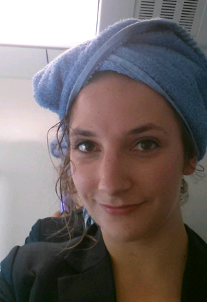 (在高鐵上洗完頭髮。Leonie Müller個人部落格PO圖)