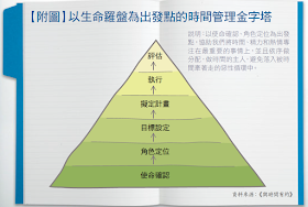 不過,究竟應該怎麼做?柯維提出一個時間管理金字塔,教你用一輩子的角度,安排每一周的行動計畫: