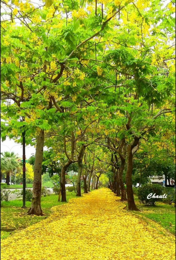 臺中市興大路的阿勃勒花道。(趙令級牧師提供)