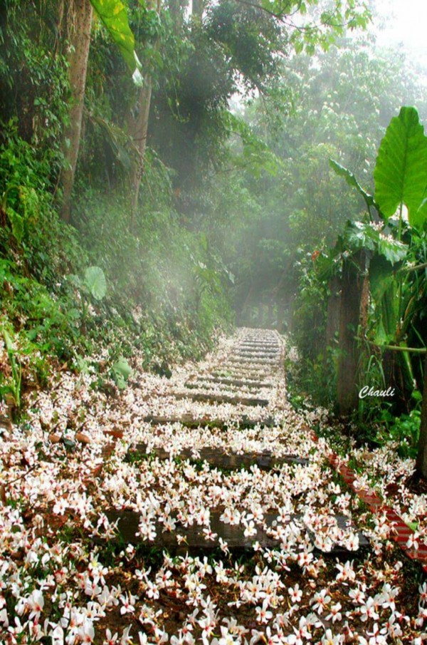 趙令級先生拍攝的經典花道美照,包括:南投縣仁愛鄉萬大電廠的櫻花道、嘉義縣新港鄉六興宮的黃花風鈴木花道、台南市將軍區苓仔寮的木棉花道、彰化市福田社區的油桐花道嘉義縣民雄鄉藍花楹花道、台中市興大路的阿勃勒花道。