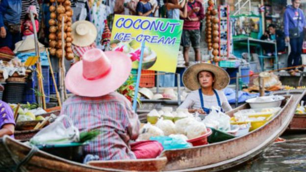 距離曼谷西南部約100公里的Damnoen Saduak是泰國最著名的水上市場。(圖片來源:Isa Foltin/GettyImages)