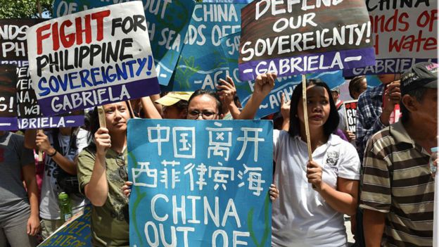 海牙的常設仲裁法院周二(7月12日)就南海仲裁案宣佈裁決,指中國在南海領域「九段線」並享有「歷史權利」沒有法律依據。加上南沙群島面積不足以構成島嶼,所以中國在南沙群島上面建造人工島等行為等同侵犯菲律賓主權。