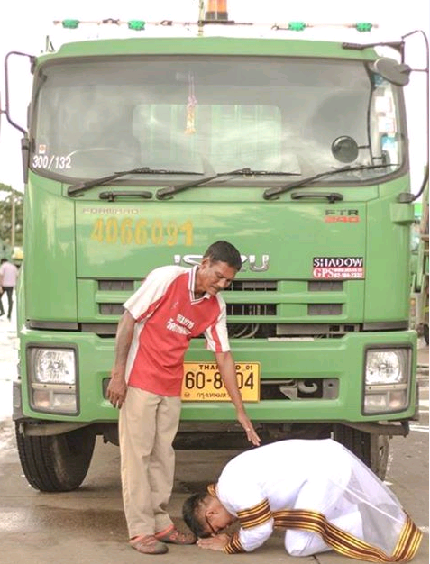 泰國《曼谷郵報》(Bangkok Post)10月7日報導指出,一名10月間剛從泰國著名學府朱拉隆功大學(Chulalongkorn University),工程學系畢業的青年卡拉納隆(Klanarong Srisakul),近日透過其臉書及視訊,發佈一則在垃圾車前面,2度向父親足前下跪,感念其培育之恩的難得場景;原因是開著垃圾車的父親,每天辛苦工作,支持他完成大學學業。名校畢業,有著光明前程等著他的孩子,卻不忘初衷;臉書內容中,並無特別顯露華麗言辭;倒是實際行動的感恩下跪,令人動容。